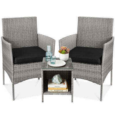 3-Piece Outdoor Patio Wicker Bistro Set w/ Side Storage Table