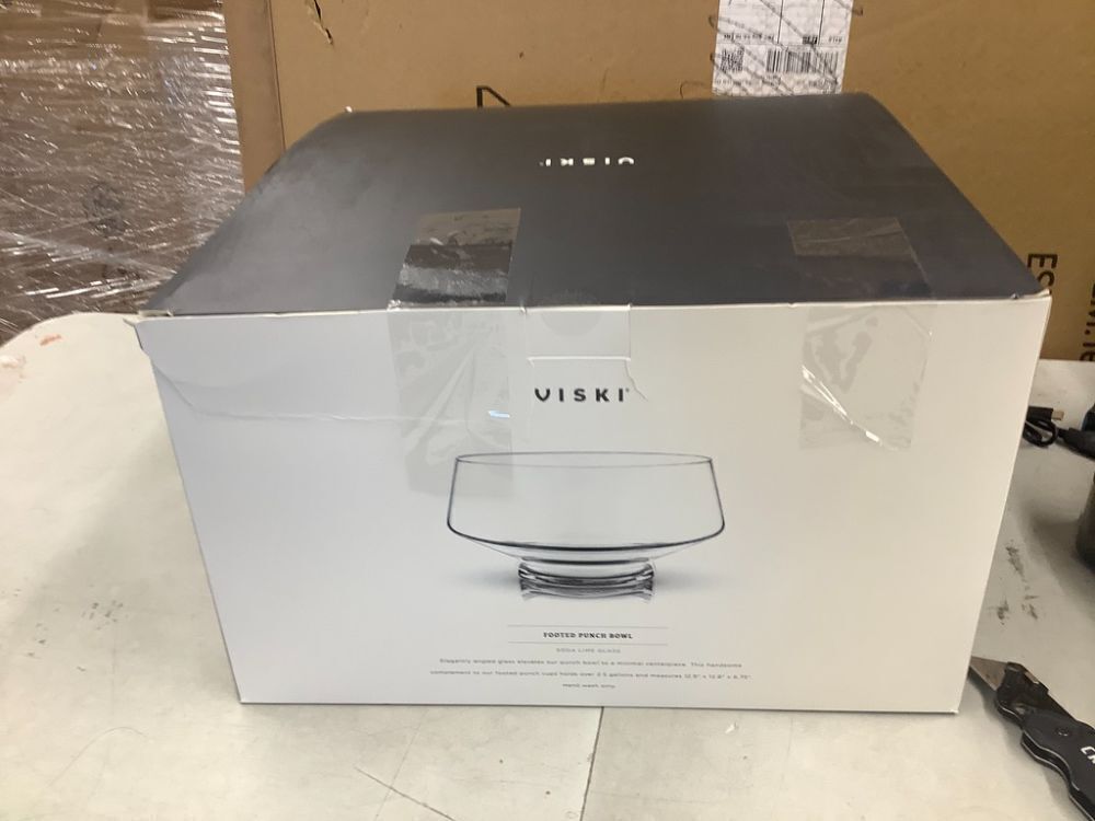 Viski Footed Glass Punch Bowl, Heavy Base Large Punch Bowl with Angled Design, Party Serveware for Cocktails & Functional Centerpiece, Clear,