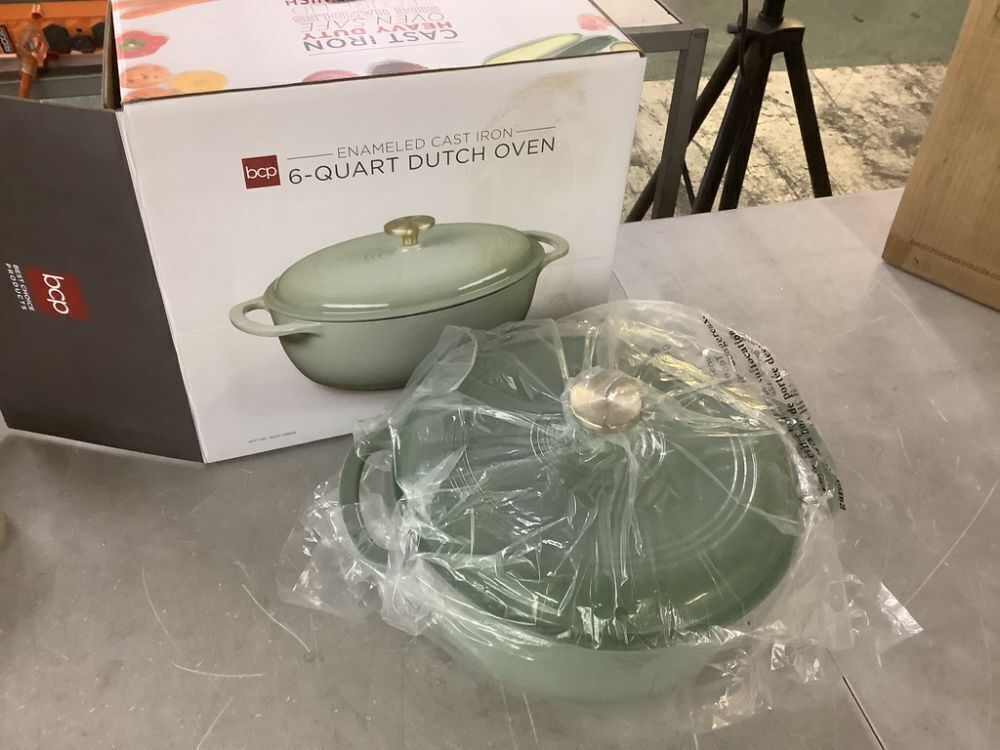 Cast-Iron Dutch Oven Kitchen Cookware w/ Enamel, Handles - 6qt