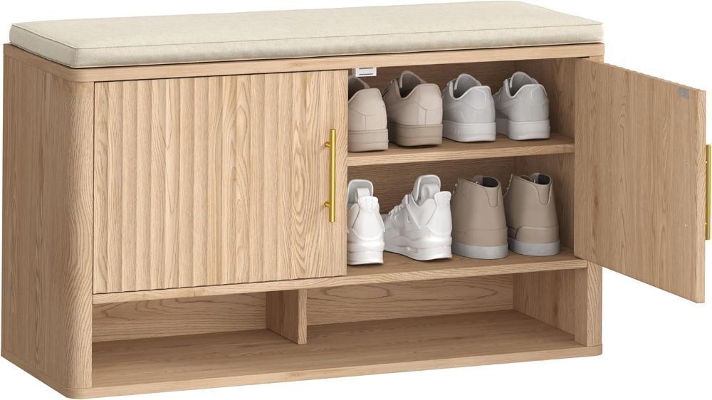 Fluted Shoe Storage Bench with Cushion