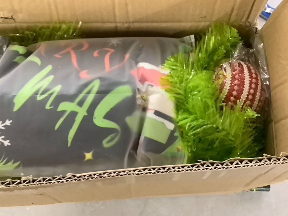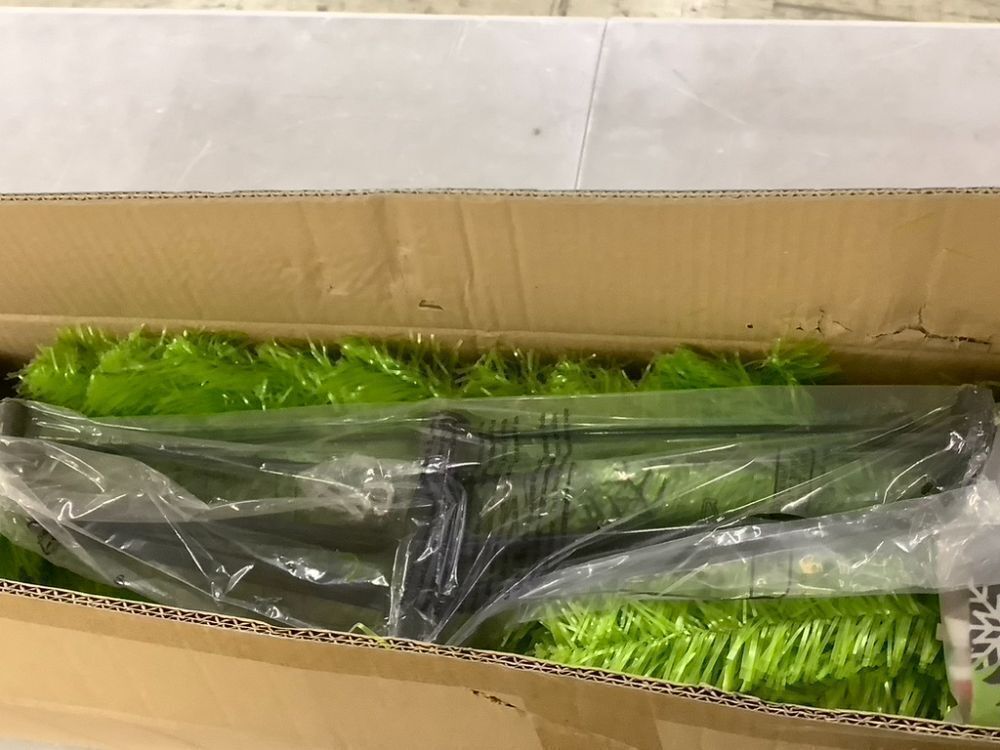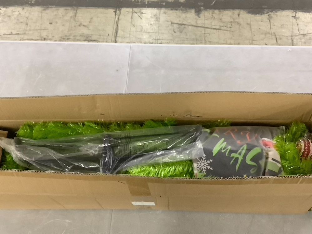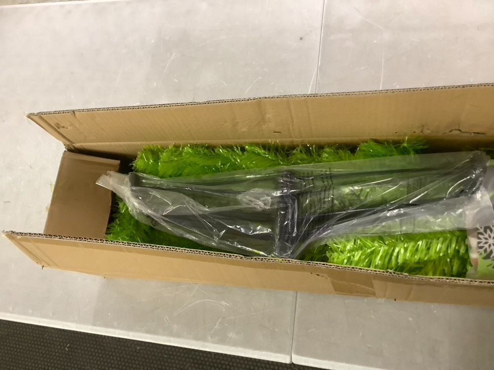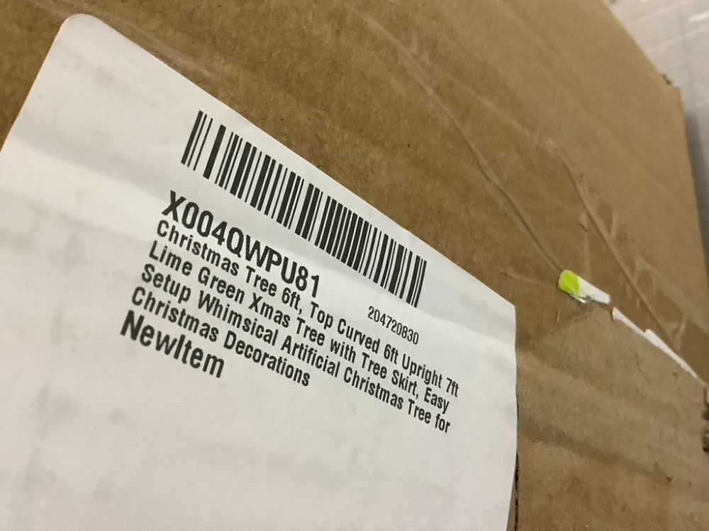 Lime Green Xmas Tree with Tree Skirt, 6' Curved Top, 7' Straight Upright