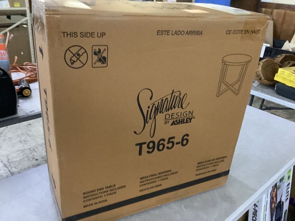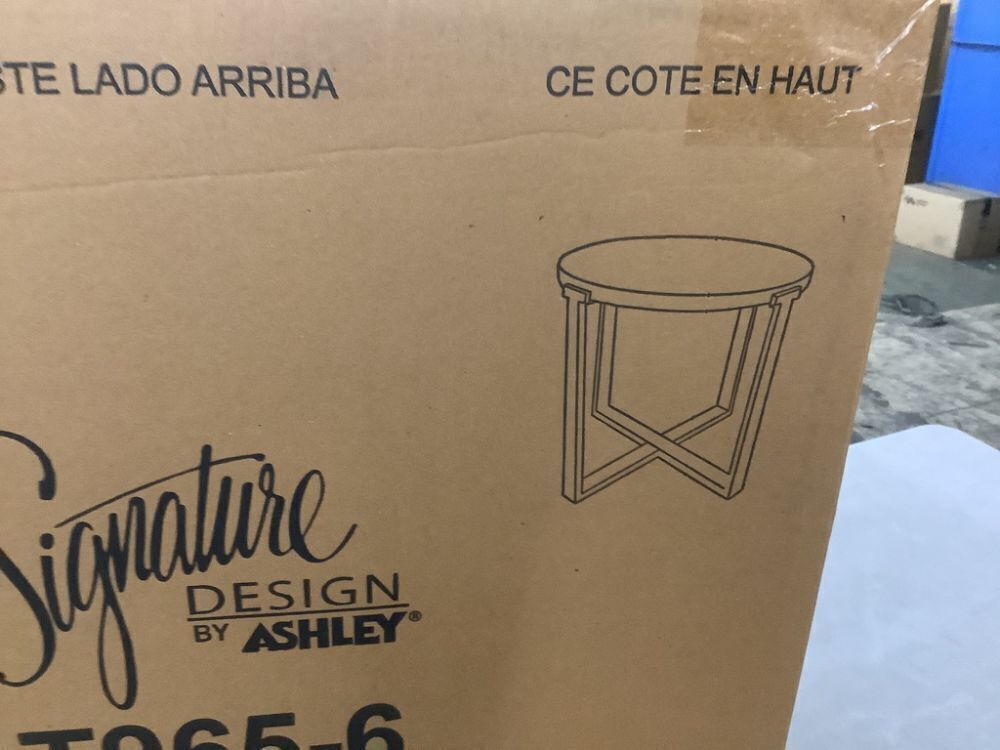 Signature DESIGN BY ASHLEY Dalenville 25 in. Gray Round Wood End Table with Distressed Finish