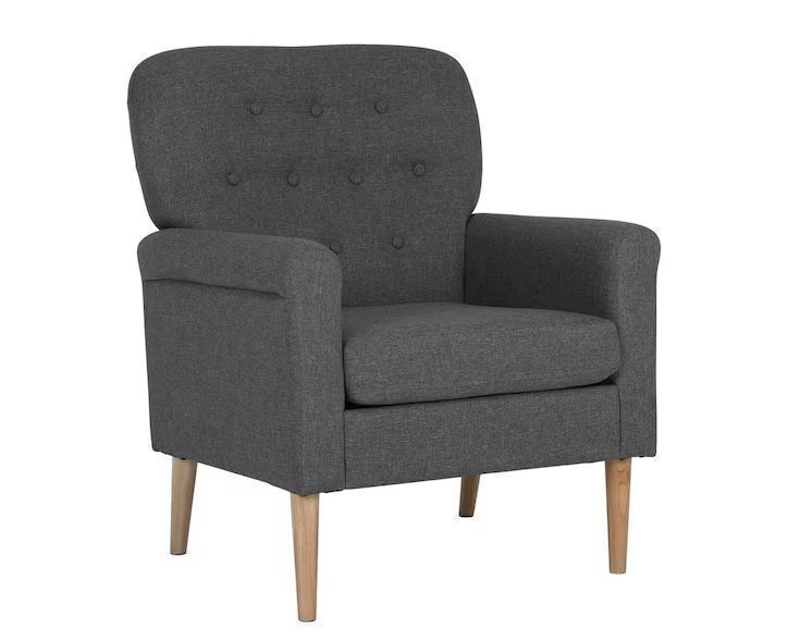 Walsport Gray Linen Fabric Chair Single Upholstered Wide Armchair with Removable Cushion