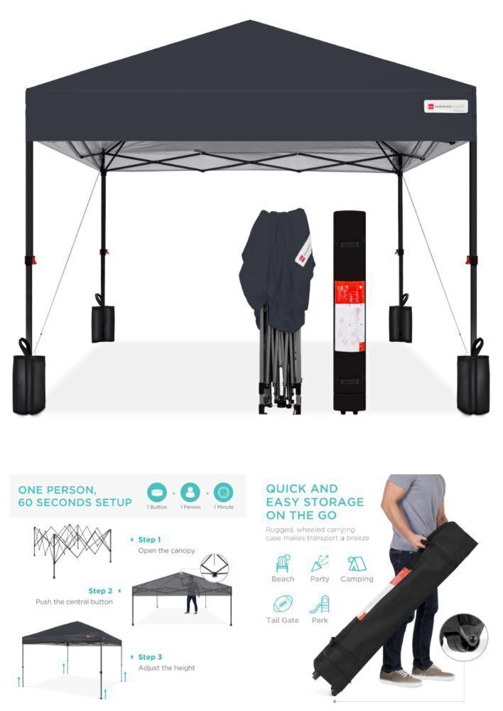ROLLING STORAGE CASE: Compact your canopy with a few clicks of the button and slide it into the zip-up carrying case! Features a set of wheels and a rugged handle to move from party to party