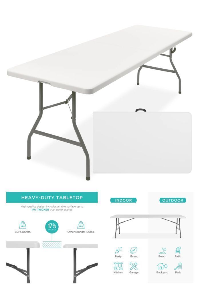 INDOOR/OUTDOOR USE: Versatile use makes it perfect as a dining or game table for outdoor cookouts or birthday parties, or as a serving or display table for indoor events