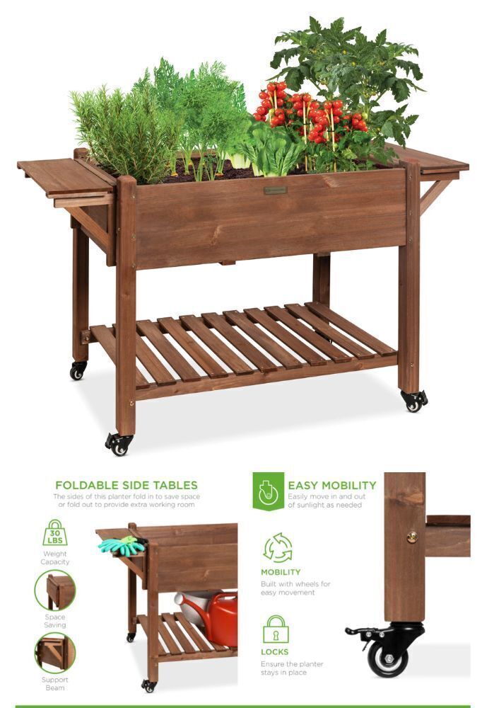 FOLDABLE SIDE TABLES: Pull your planter's sides out to extend your workspace and hold tools, supplies, or potted plants; then easily fold them down to save space when not in use