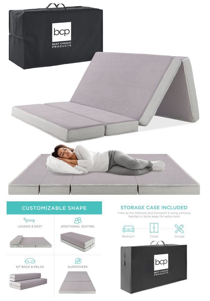 PORTABLE AND SPACE-SAVING: Simply slip the included carrying case over the portable, tri-fold mattress and zip it up to keep it neat and secure while you travel