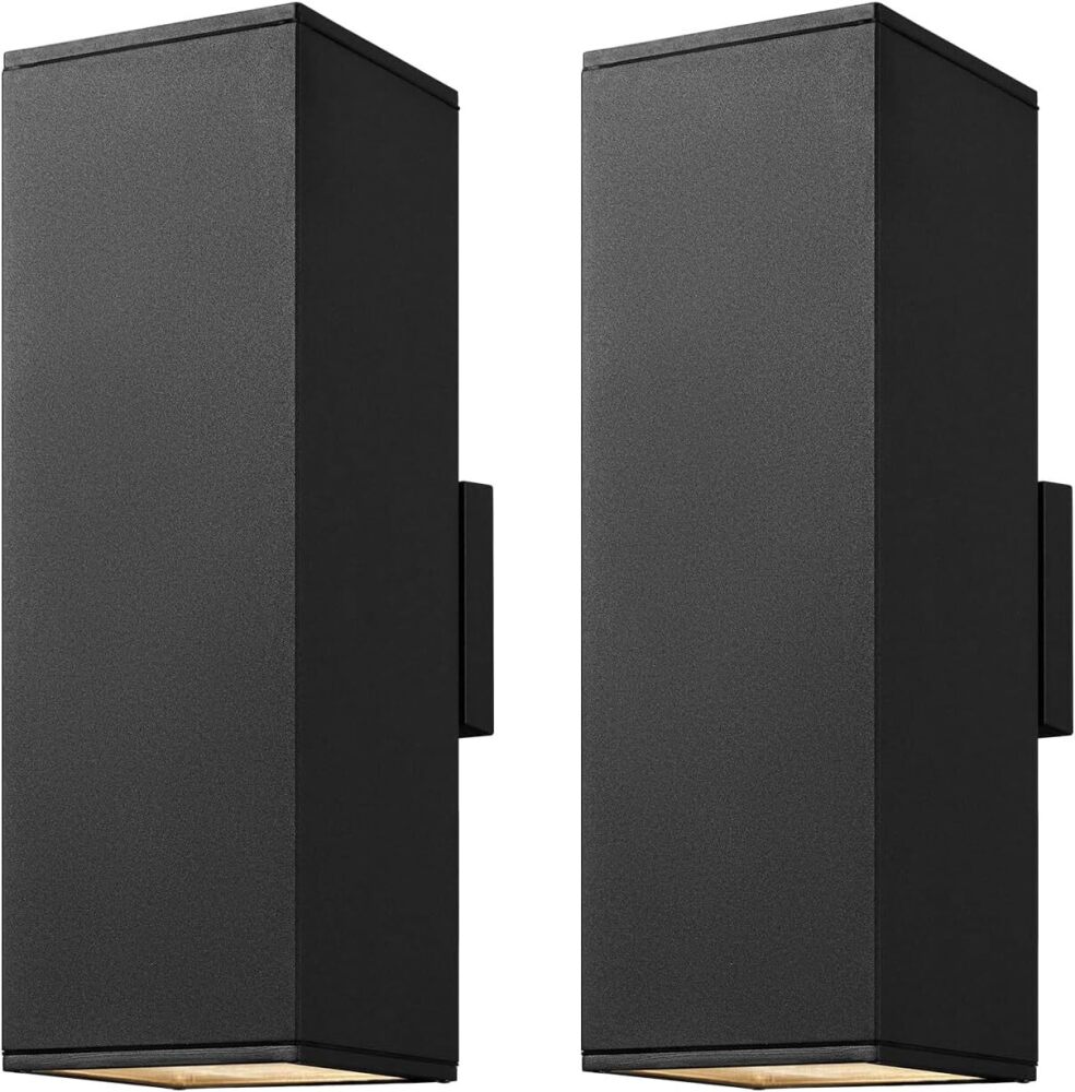 mirrea Modern Outdoor Porch Light Patio Light in 2 Lights with Aluminum Rectangular Tube and Tempered Glass Cover Waterproof Wall Sconce 2 Pack (Matte Black 18")
