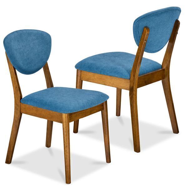 2-Piece Mid-Century Modern Wood &Upholstered Dining Chair Set