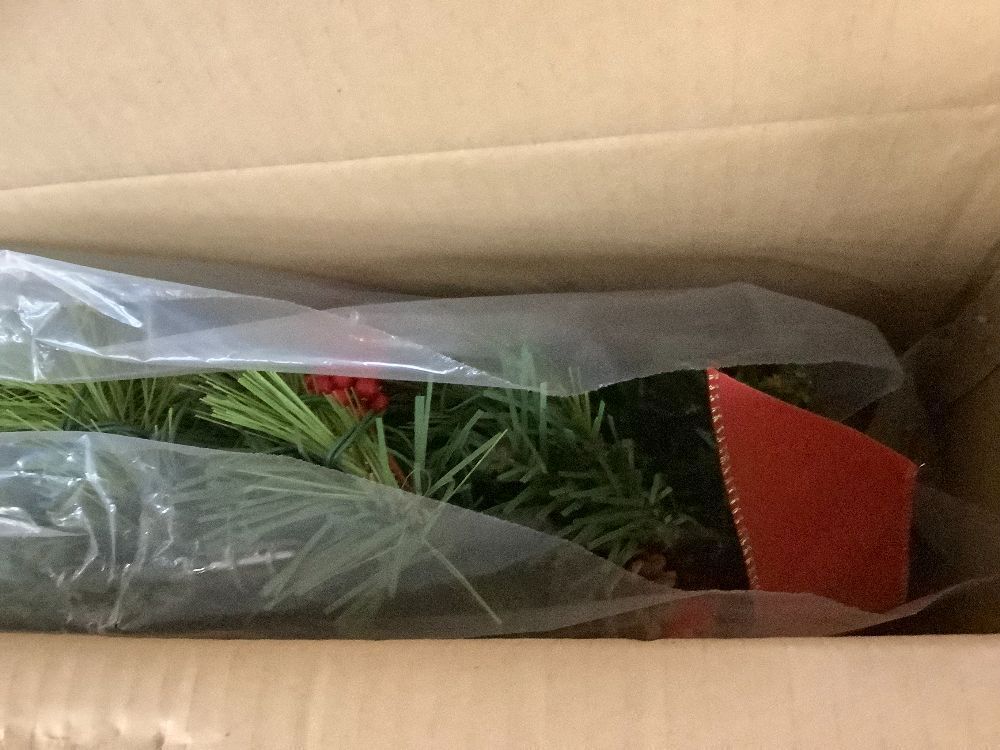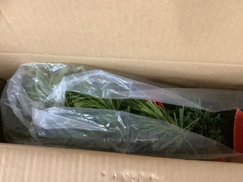 24" Pre-Lit Battery Powered Christmas Wreath w/ Lights, PVC Tips, Ribbon