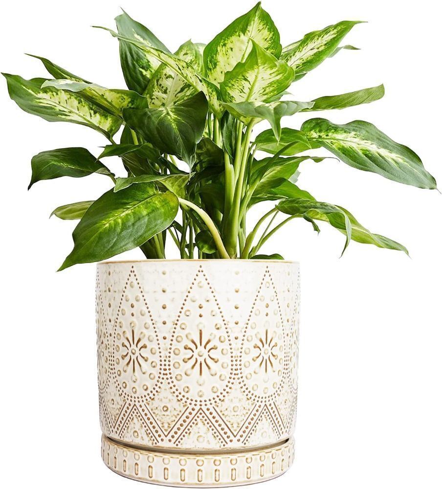 8 Inch Indoor Ceramic Plant Pot with Drainage Holes and Saucer