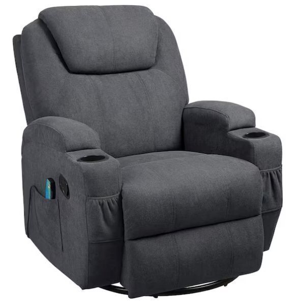 Big and Tall Smoke Gray Recliner Swivel and Rocking Chair with Power Massage Function