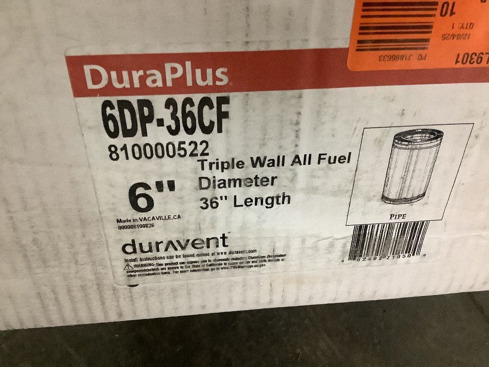 DuraVent DuraPlus All-Fuel Chimney 6in. X 36in. Diameter Chimney Pipe