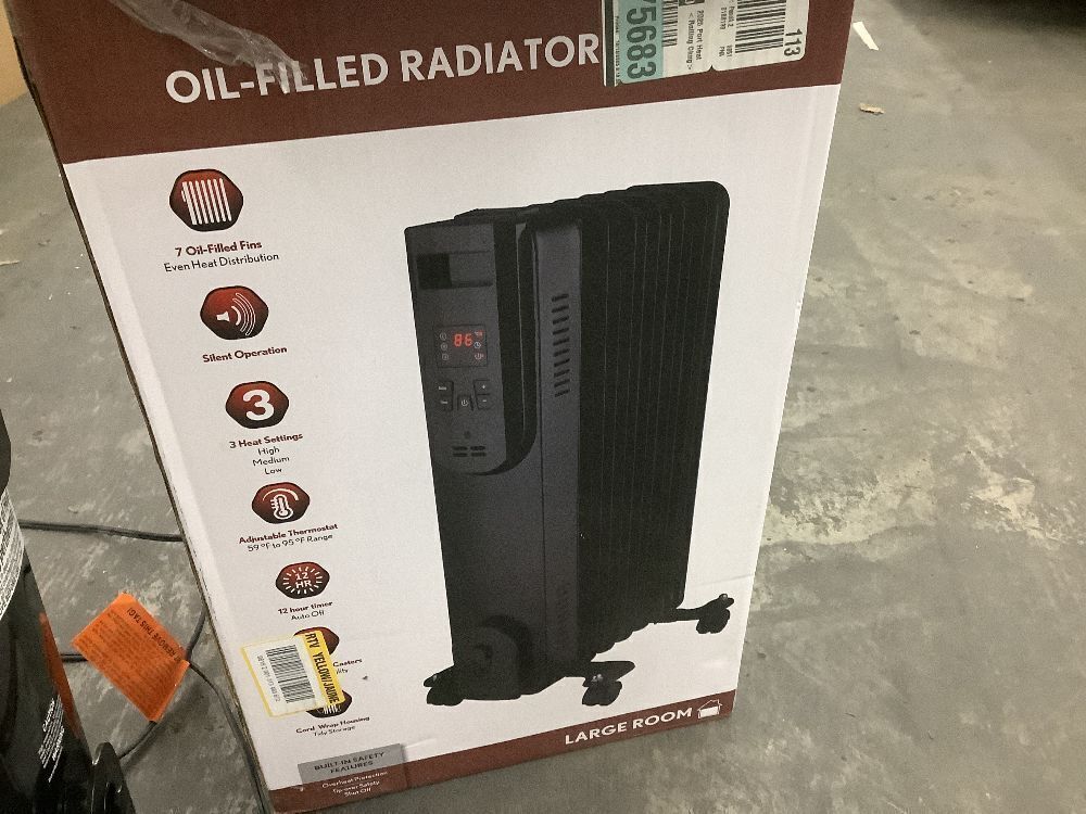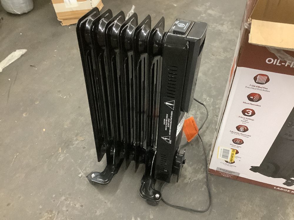 Konwin 1500-Watt Black Indoor Electric Oil-Filled Radiator Convection Radiant Space Heater with Remote Control - Missing 2 Wheels