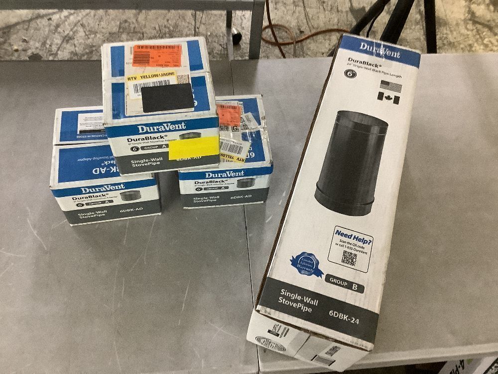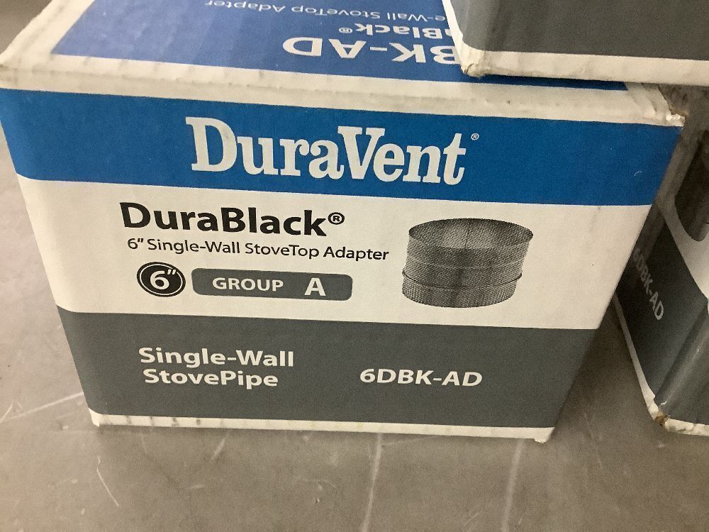 Lot of (3) DuraVent DuraBlack Stove Pipe 6in. Diameter Stovetop Adapter & (1) DuraBlack Series 6in. Diameter X 24in. Single Wall Black Stove Pipe