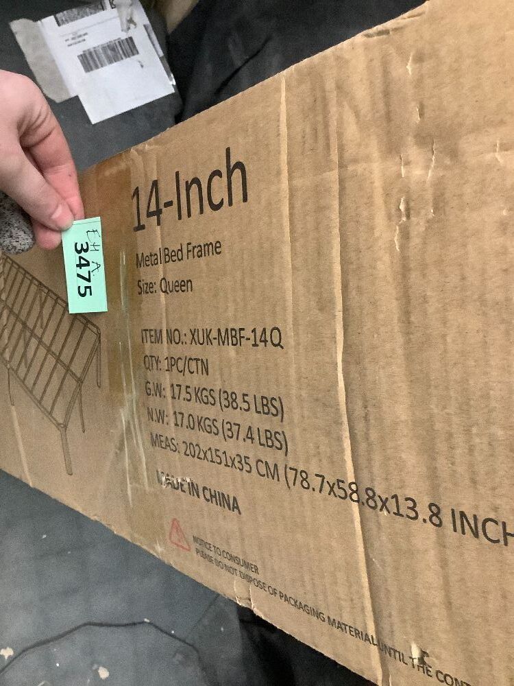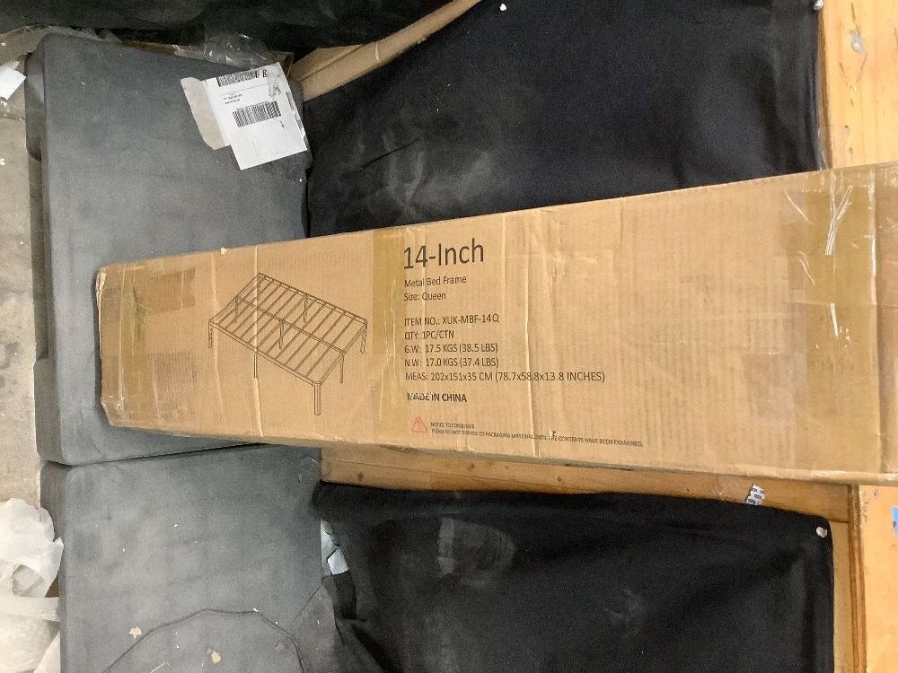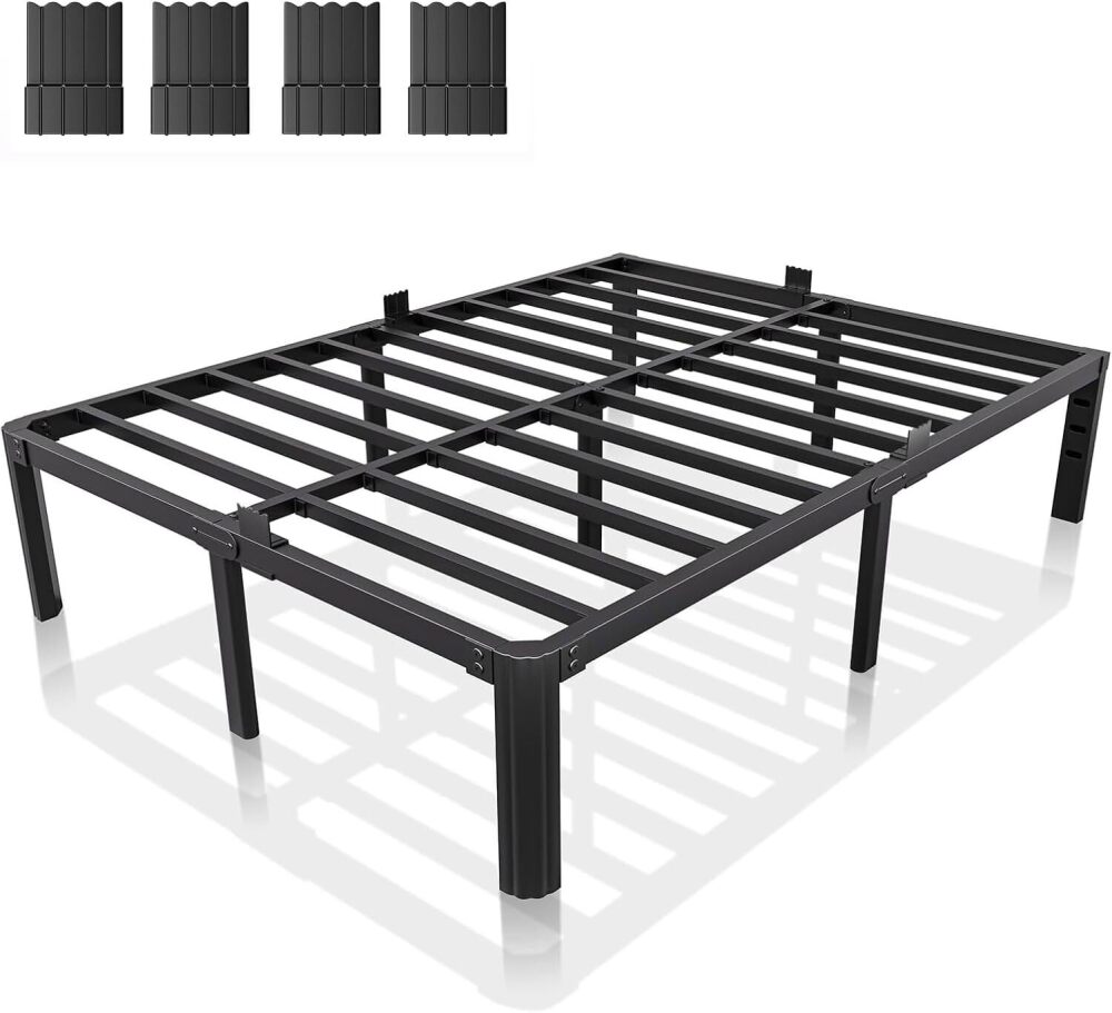 14 Inch Metal Bed Frame Queen Size, Heavy Duty Balck Platform Queen Size Bed Frame with Round Corner Legs, Mattress Slide Stopper, No Box Spring Needed, Easy Assembly