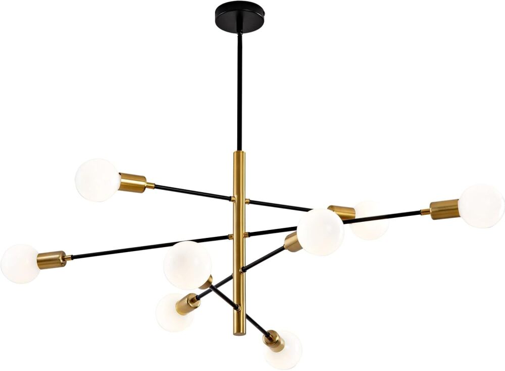 Gold and Black Sputnik Chandelier 8-Light Modern Ceiling Light Fixture Farmhouse Chandelier Height Adjustable Over Table Lighting for Dining Room Living Room Kitchen Island