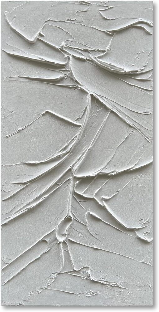 NANKAI Art Hand Painted White Canvas Wall Art 48x24 inch Abstract Modern Oil Painting Contemporary Textured Wall Art Minimalist Artwork Home Decor