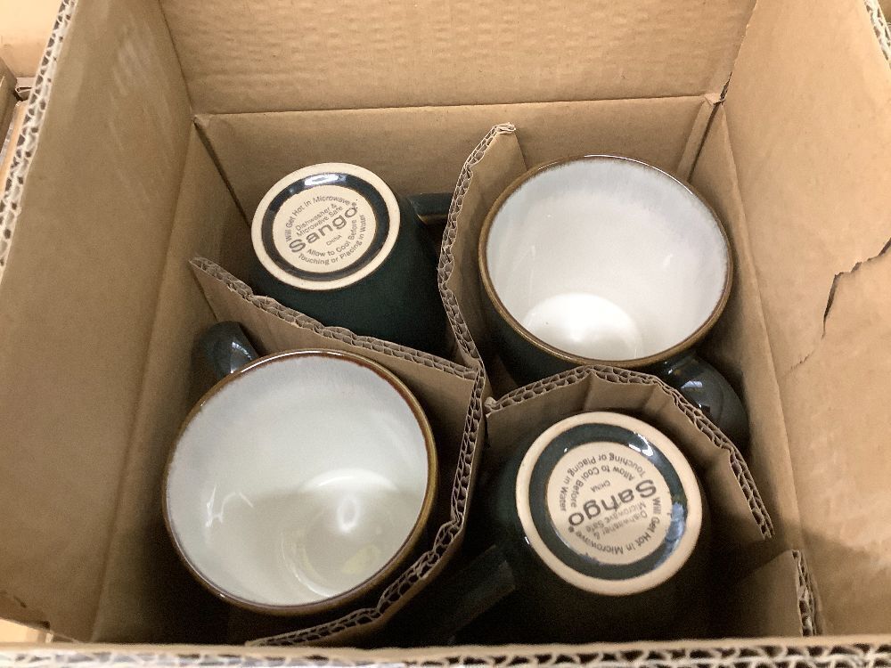 Sango 16-Piece Stoneware Dinnerware Set for 4, Glossy White & Green Mugs, Plates and Bowls Sets- Reactive Glaze, Ceramic Dish Set, Dishes for Everyday Use, Microwave & Dishwasher Safe, Novelle Moss