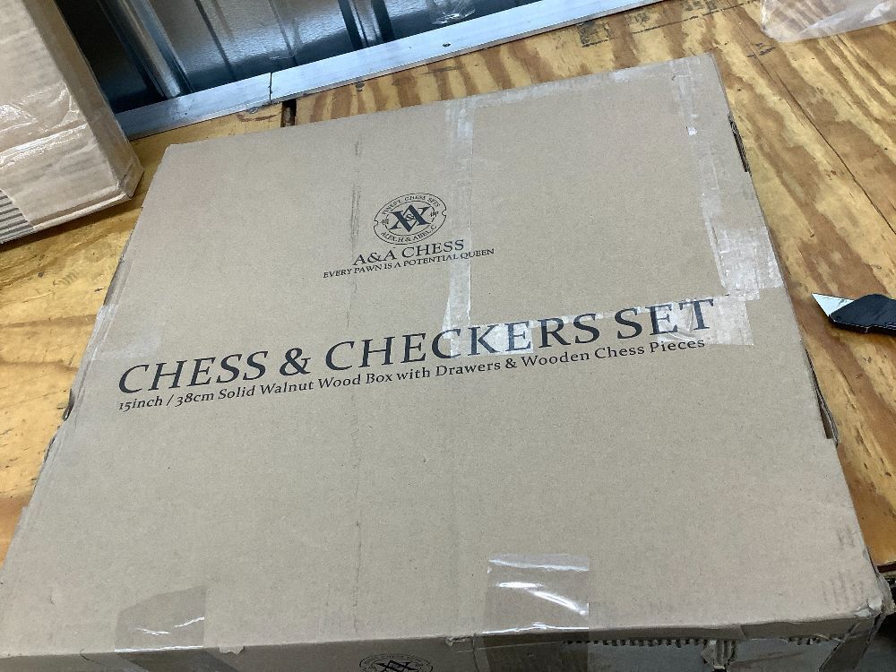 A&A 15 inch Walnut Wooden Chess Set with Storage Drawer, Triple Weighted Pieces, 3.0 inch King Height, Walnut & Maple Inlay, 2 Extra Queen, Classic 2 in 1 Chess and Checkers Board Game