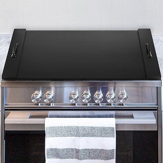 BLUEWEST Gas Stove Burner Covers, Wooden Noodle Board Stove Cover, Wooden Electric Stove Top Cover for Counter Space with Handle, Extra Thick Natural Acacia Wood Durable Serving Tray (Black)
