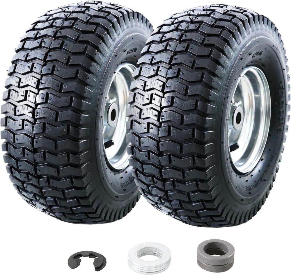 MZREXN 15x6.00-6 Lawn Mower Tires and Wheel Assembly, Front Tires Replacement, Compatible with John Deere & More Riding Mowers, 4 Ply Pneumatic, 3" Centered Hub, 3/4" Bearings, 2PCS