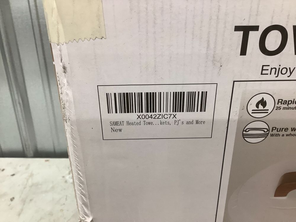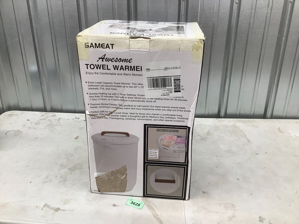 SAMEAT Heated Towel Warmers for Bathroom - Large Towel Warmer Bucket, Wood Handle, Auto Shut Off, Fits Up to Two 40"X70" Oversized Towels, White