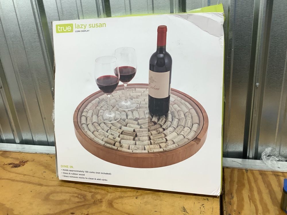 True Wine Cork Collector Lazy Susan Turntable, Wooden and Glass Storage for 130 Corks, Tabletop or Countertop Organization, Set of 1