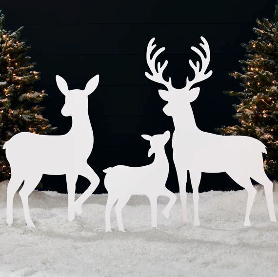 3-Piece 2D Deer Family Silhouette Yard Decoration w/ Buck, Doe, Fawn - 46in
