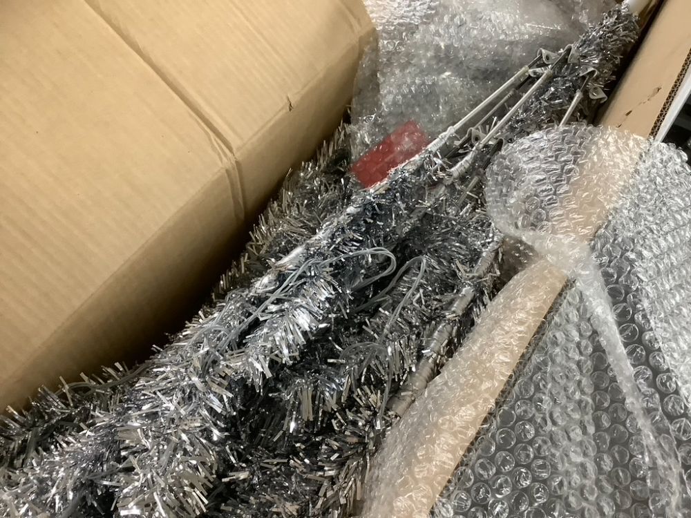 6' Prelit Silver Artificial Tinsel Christmas Tree w/ Foldable Stand