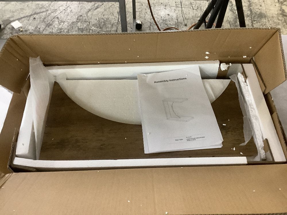 BYBLIGHT Kerlin 23.62 in. Rustic Brown C-Shaped Wood End Table