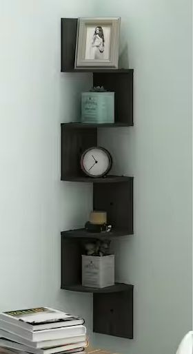 Furinno 48.8 in. Espresso Wood 5-shelf Wall Mount Corner Bookcase