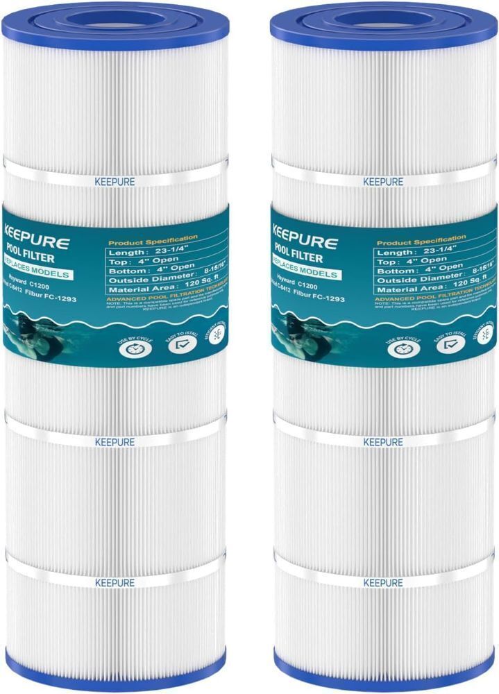 KEEPURE C1200 Pool Filter Cartridge Replacement for CX1200RE, PA120, C-8412, Ultra-B2, FC-1293, Clearwater II 125, 817-0125N, PCCF-125,120 Sq. Ft Cartridge Filter (2, White)