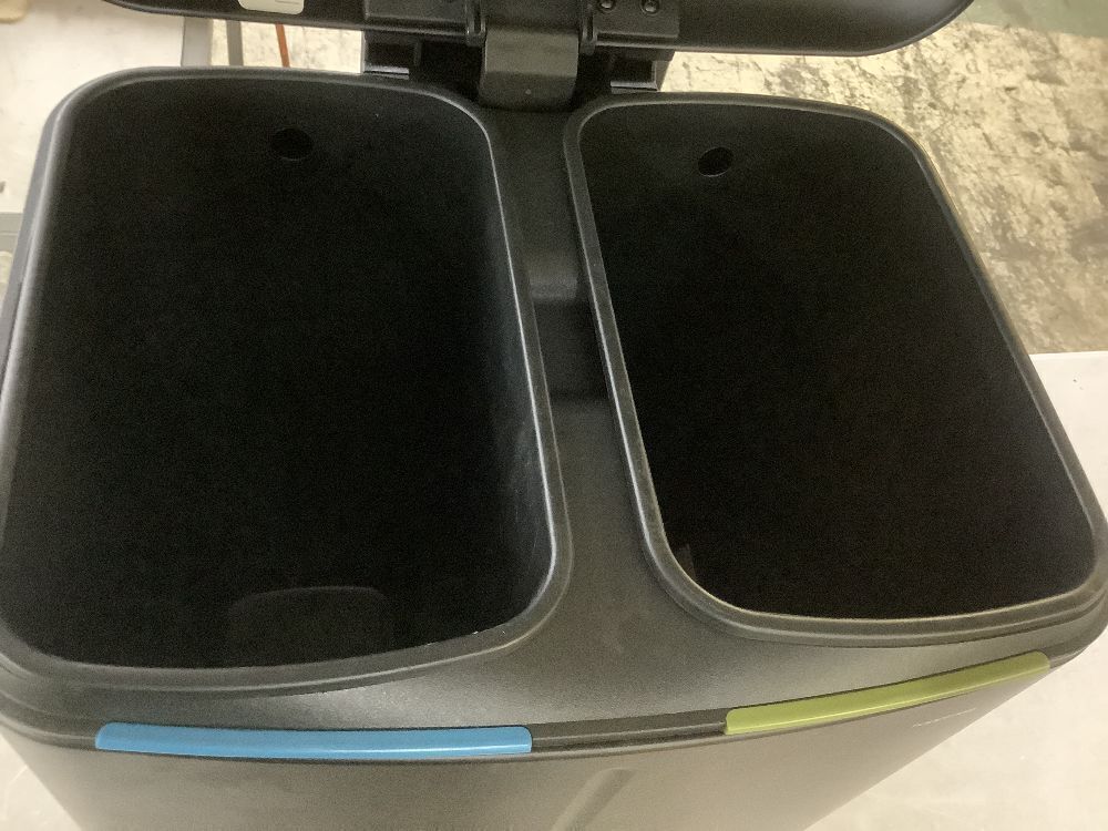 Marco 10.5 Gal. Black Rectangular Double Bucket Trash Can with Soft-Close Lid - Dented
