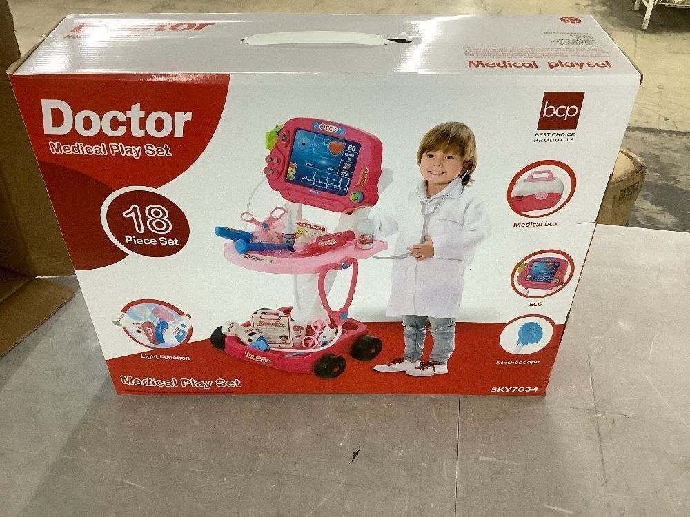 Play Doctor Kit for Kids, Pretend Medical Station Set with Carrying Case, Mobile Cart