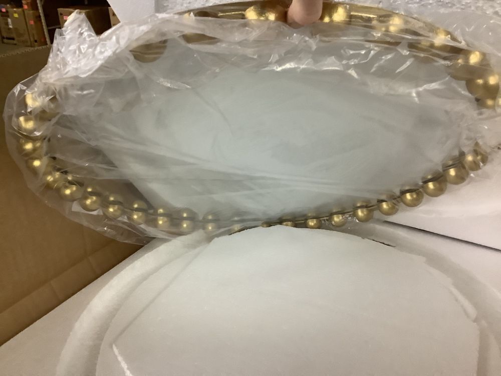 Round Gold Beaded Metal Frame Wall Mirror 27 in