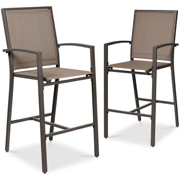 Set of 2 Outdoor Barstools, Patio Chairs w/ Footrests, All-Weather Mesh