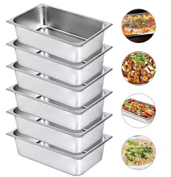 VEVOR 21.7 qt. Stainless Steel Full Size Pans, 20.9 x 12.8 x 5.9 in., 6 Pack