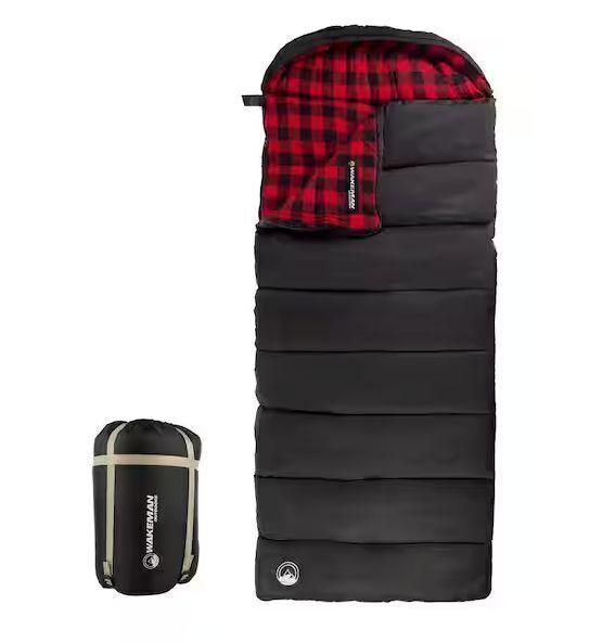 Wakeman Outdoors XL 3-Season Envelope Style Sleeping Bag with Carrying Bag and Compression Straps in Red/Black