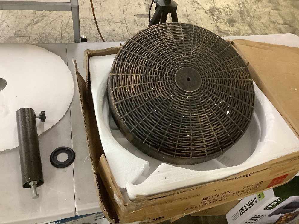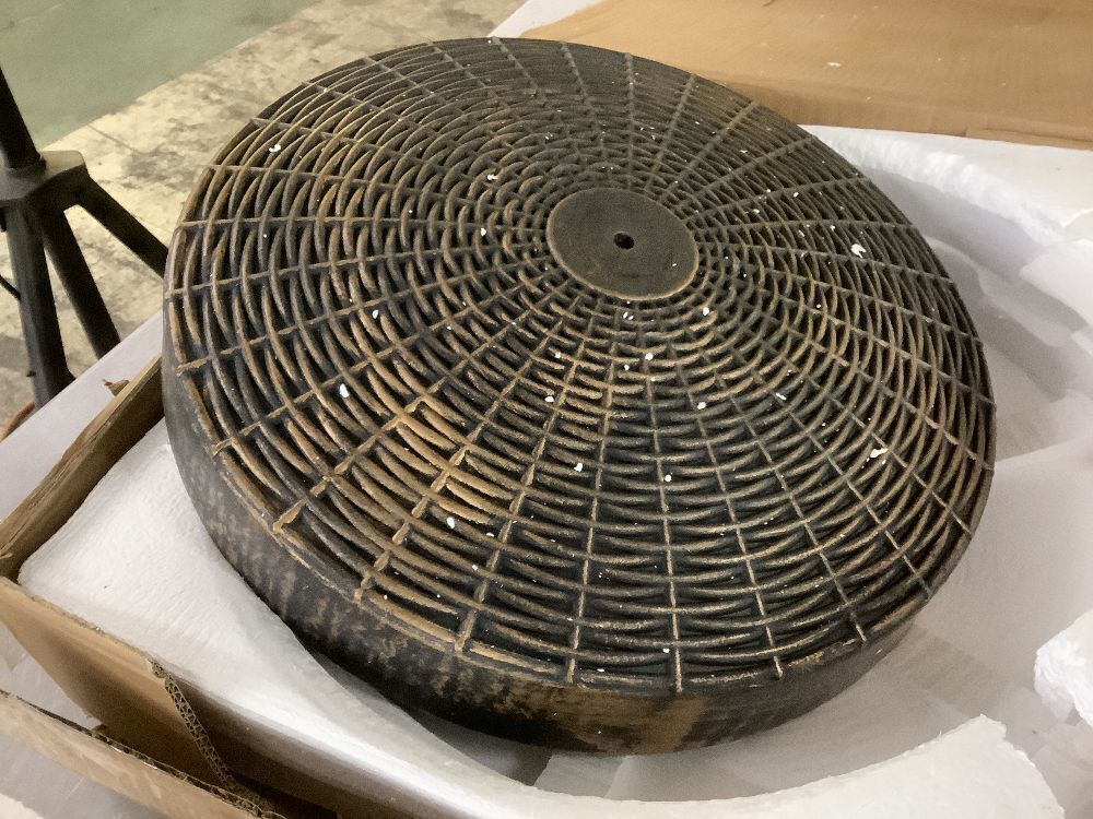 55lb Round Wicker Style Patio Umbrella Stand w/ Blackened Bronze Finish