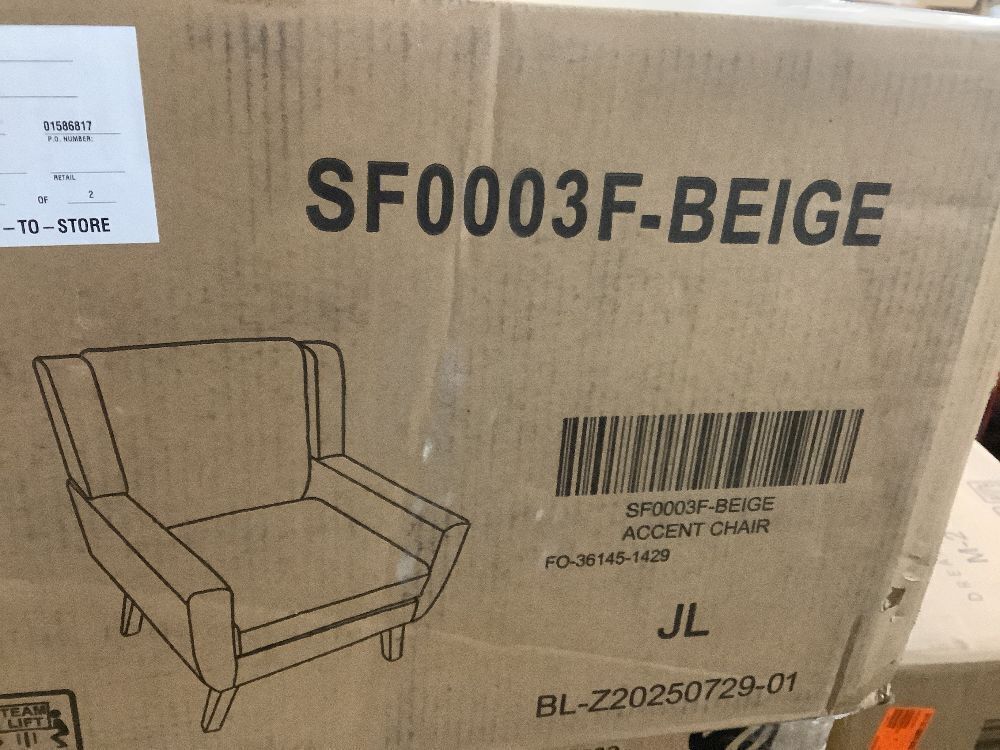 Contemporary Beige Wood Frame Linen Upholstered Accent Arm Chair