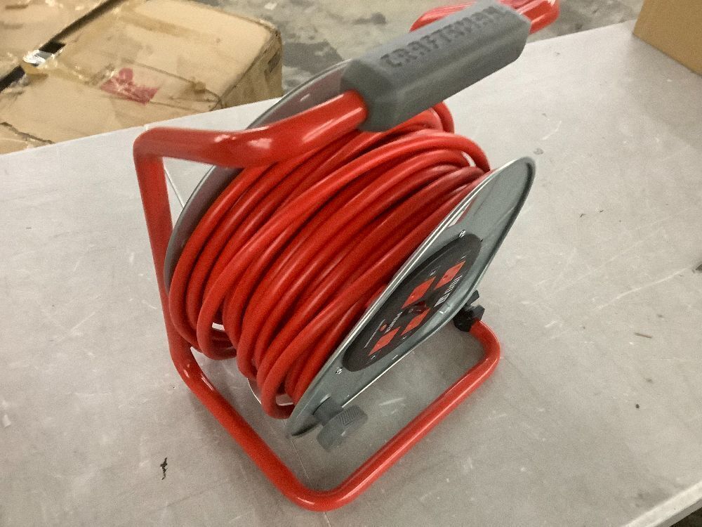 CRAFTSMAN 100 Ft. Contractor Retractable Extension Cord Reel with 4 Outlets & Heavy Duty 12AWG SJTW Cable - Bent
