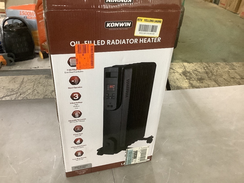 Konwin 1500-Watt Black Indoor Electric Oil-Filled Radiator Convection Radiant Space Heater with Remote Control for Living Space