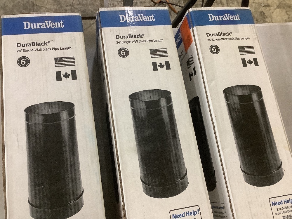 Lot of (3) DuraVent DuraBlack Series 6in. Diameter X 24in. Single Wall Black Stove Pipe