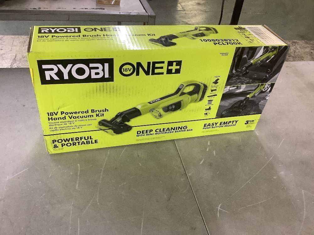 RYOBI ONE+ 18V Cordless Hand Vacuum with Powered Brush Kit with 2.0 Ah Battery and Charger