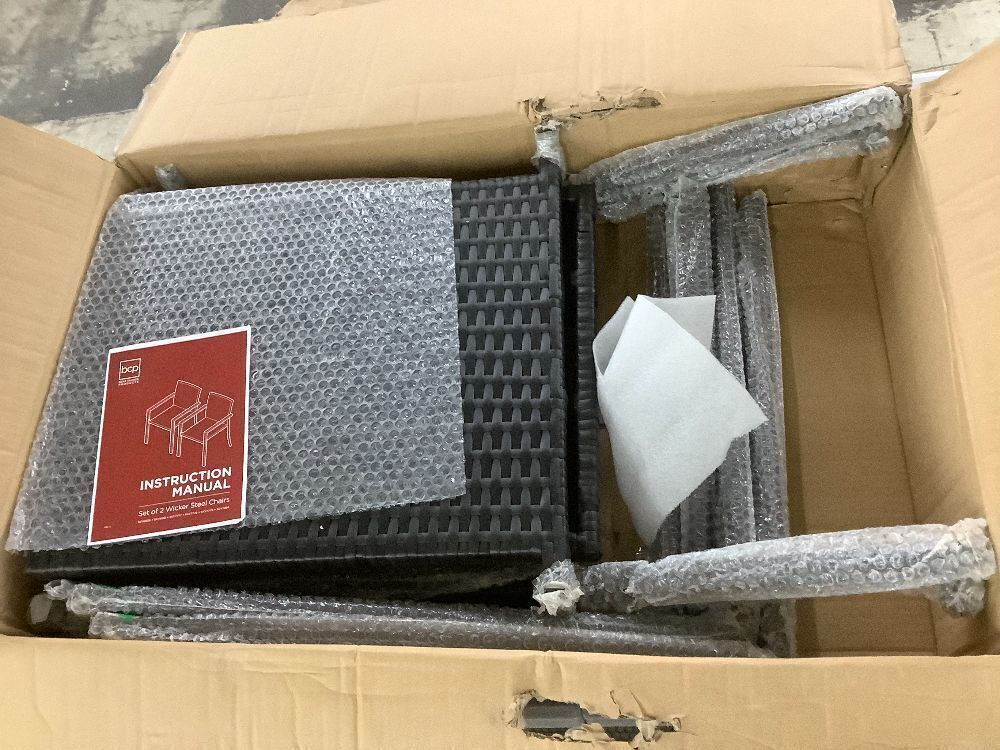 Set of 2 Stackable Wicker Chairs w/ Armrests, Steel Accent Furniture