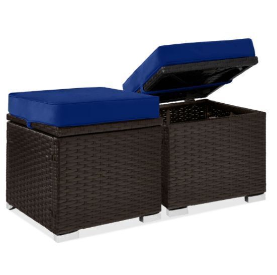 Set of 2 Wicker Ottomans, Multipurpose w/ Removable Cushions, Steel Frame