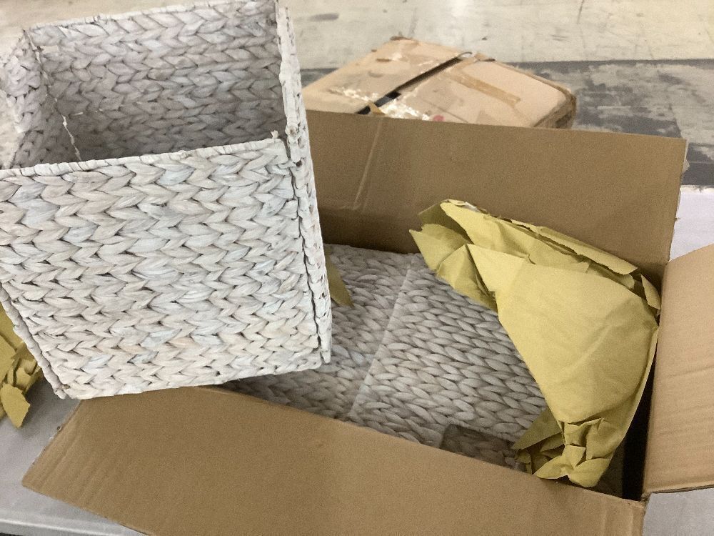 Set of 5 Collapsible Hyacinth Storage Baskets w/ Inserts - 12x12in