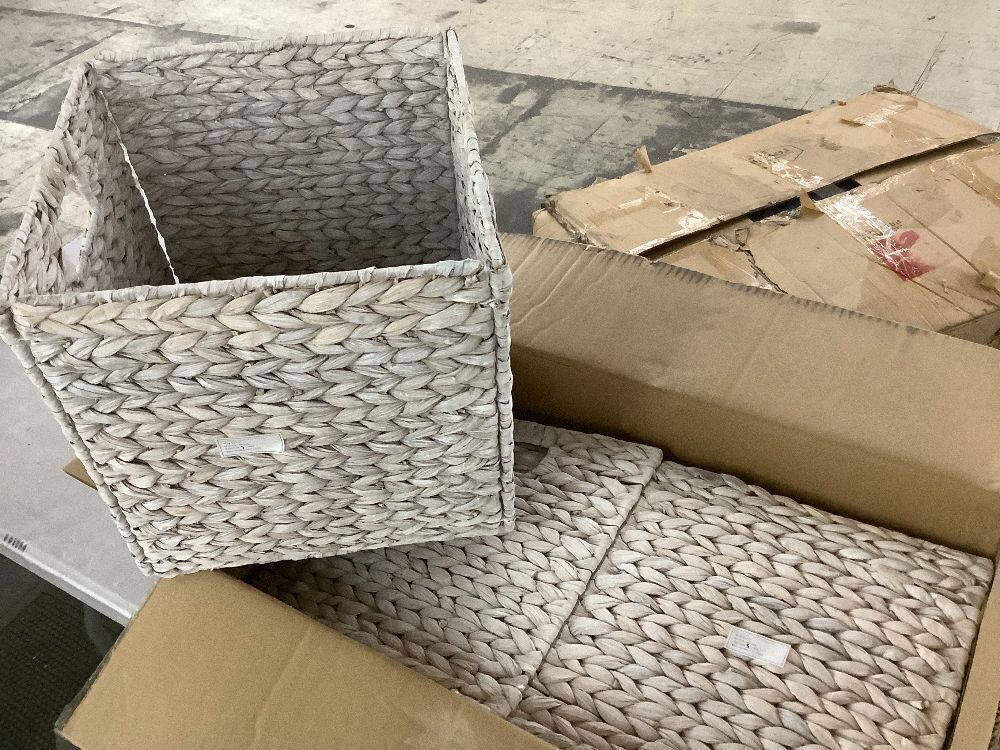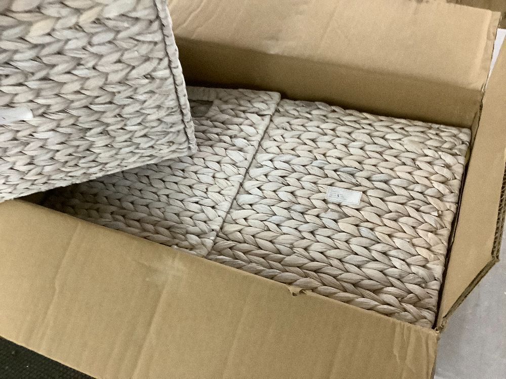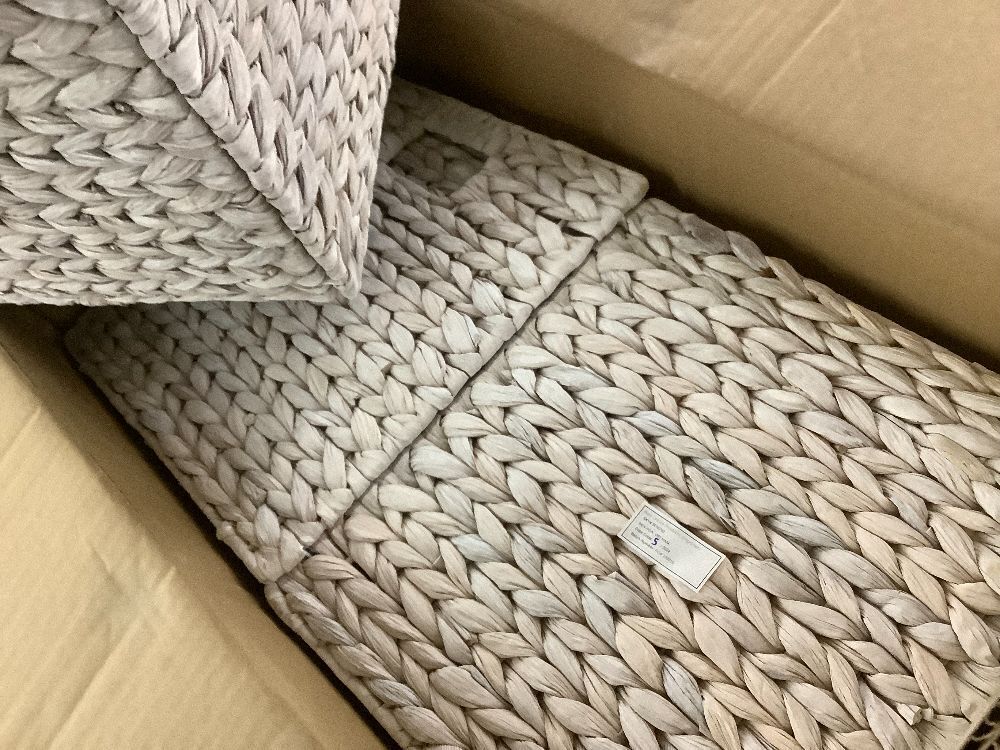 Set of 5 Collapsible Hyacinth Storage Baskets w/ Inserts - 12x12in