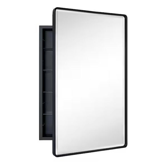 TEHOME Farmhouse 24 in. W x 36 in. H Recessed Rectangular Metal Framed Bathroom Medicine Cabinets with Mirror in Matte Black